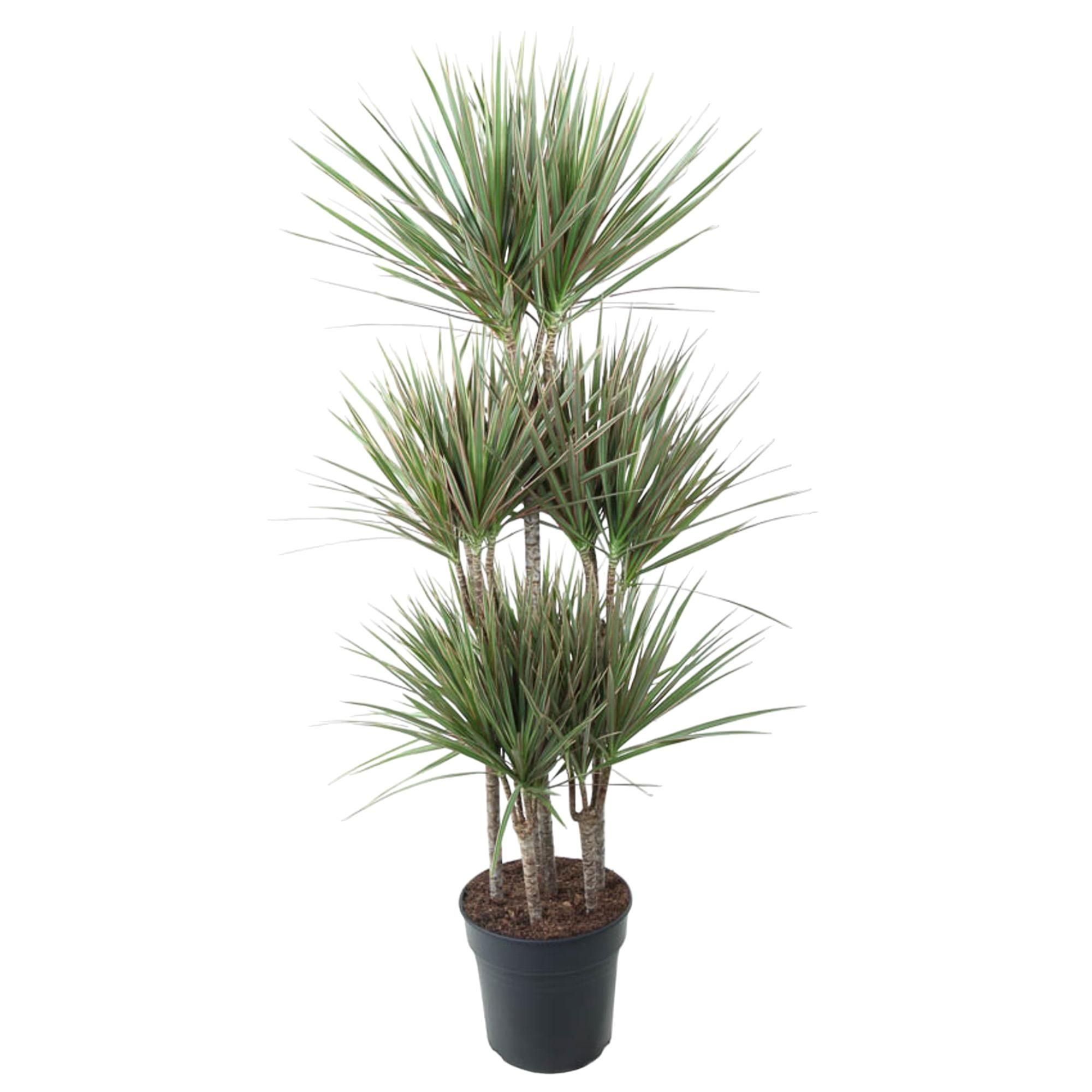Op zoek naar wat natuurlijke schoonheid in je binnenruimte? Maak kennis met Dracaena Bicolor, ook wel bekend als Dragontree. Afkomstig uit tropisch Afrika, heeft deze prachtige kamerplant levendige groene bladeren met een vleugje geel in het midden, waardoor elke kamer een vleugje exotische allure krijgt. Met zijn luchtzuiverende eigenschappen voegt Dracaena Bicolor niet alleen visuele aantrekkingskracht toe, maar helpt het ook de luchtkwaliteit in je huis of kantoor te verbeteren. Gemakkelijk te verzorgen en met minimaal onderhoud nodig, is deze plant de perfecte aanvulling op je binnen tuin. Dracaena, ook bekend als Drakenplant, gedijt op een plek met halfschaduw en moet eens per week bewaterd worden. Het geeft de voorkeur aan goed doorlatende grond, zoals een mengsel van veenmos, zand en perliet. Om optimale groei te garanderen, bemest de plant elke 2-3 maanden met een uitgebalanceerde kamerplantenmeststof. Wees voorzichtig om niet te veel te bemesten, omdat dit de plant kan beschadigen. Daarnaast is het belangrijk om af en toe de bladeren af te vegen om stof te verwijderen en gezonde groei te bevorderen. Met de juiste verzorging zal jouw Dracaena floreren en een vleugje natuurlijke schoonheid toevoegen aan jouw ruimte.Een fascinerend feit over de Dracaena Bicolor is dat de levendige bladeren van kleur kunnen veranderen op basis van de hoeveelheid zonlicht die ze ontvangen. Deze plant vertoont opvallende groene en gele strepen wanneer hij wordt gekweekt in matig licht, maar naarmate de lichtintensiteit toeneemt, veranderen de bladeren in prachtige tinten roze en rood. Het is een verbluffende toevoeging aan elke binnenruimte en brengt moeiteloos leven en natuurlijke schoonheid in uw huis. Het is echter belangrijk om op te merken dat de Dracaena Bicolor puur voor decoratieve doeleinden is en niet geschikt is voor consumptie. Laat deze prachtige plant dus uw ruimte opvrolijken, maar denk eraan om hem uit de keuken te houden!- Dracaena Bicolor is een populaire kamerplant met een bloempotmaat van 21 cm, waardoor hij geschikt is voor kleinere ruimtes.- Deze variëteit van Dracaena groeit meestal tot ongeveer 95 cm hoogte en voegt een vleugje groen en elegantie toe aan elke kamer.- Dracaena Bicolor staat ook bekend als Drakenbloedboom en voegt een vleugje mysterie en intrige toe aan zijn naam.- Deze plant geeft de voorkeur aan een plek met halfschaduw, waardoor hij zich aan verschillende verlichtingsomstandigheden kan aanpassen.- Leuk weetje: Dracaena Bicolor zou luchtzuiverende eigenschappen hebben en helpt de kwaliteit van binnenlucht te verbeteren door schadelijke gifstoffen natuurlijk te filteren.